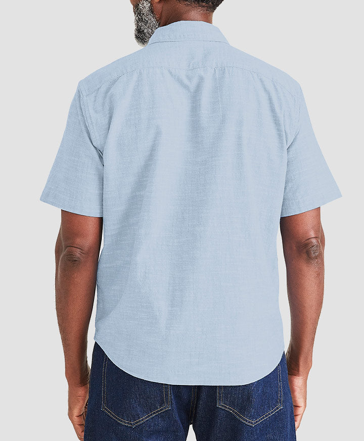 Esta camisa, de estilo informal y perfecta para el día a día, tiene un corte más corto que queda bien tanto por dentro como por fuera del pantalón.
